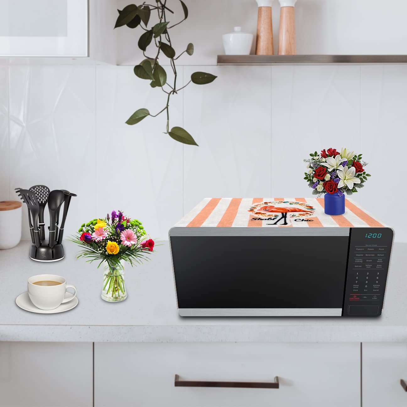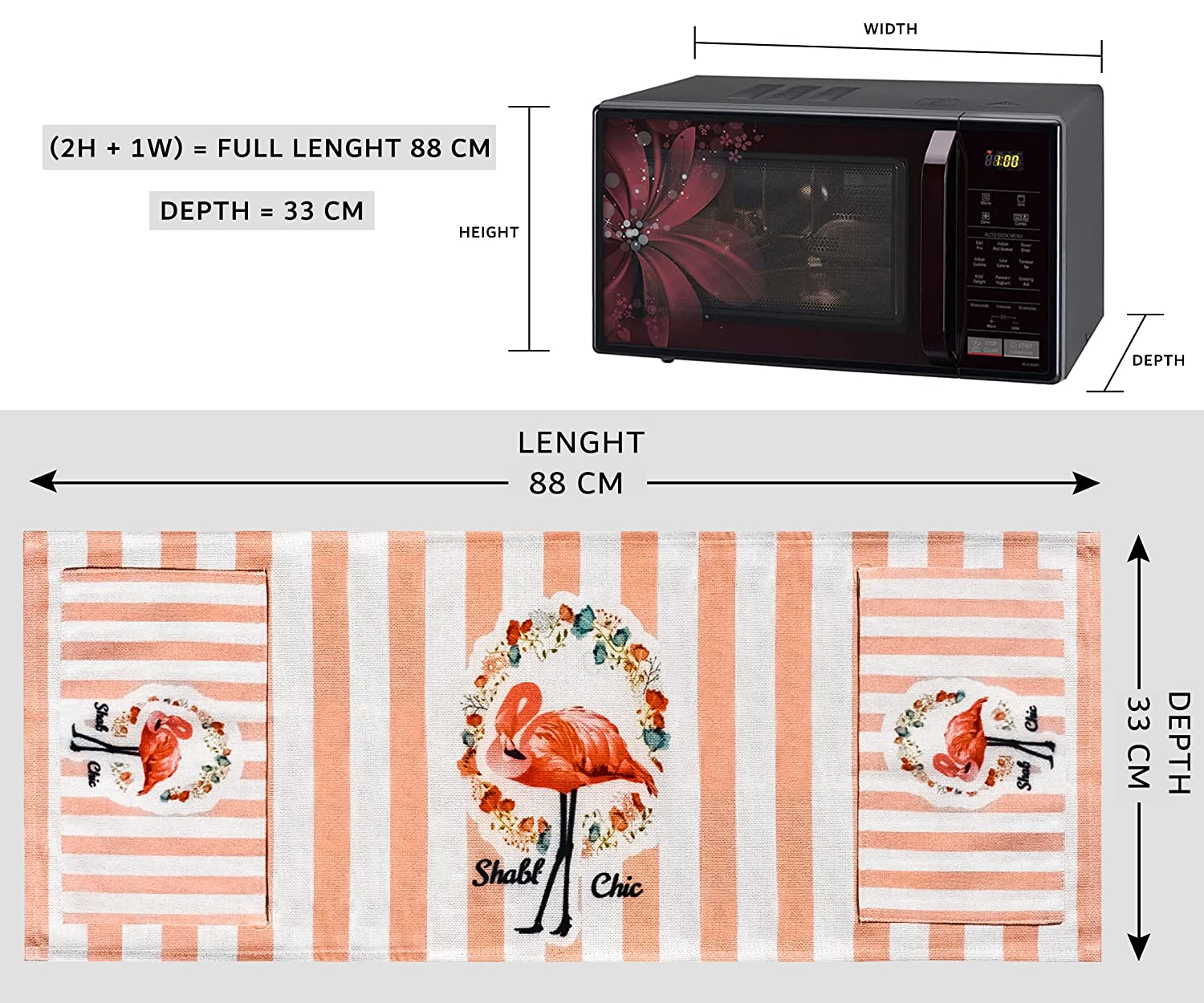 FABKUC Microwave/Oven Top Cotton Cover with 2 Utility Pockets, Splash-Proof, Dustproof Washer Dryer Cover (Flamingo)