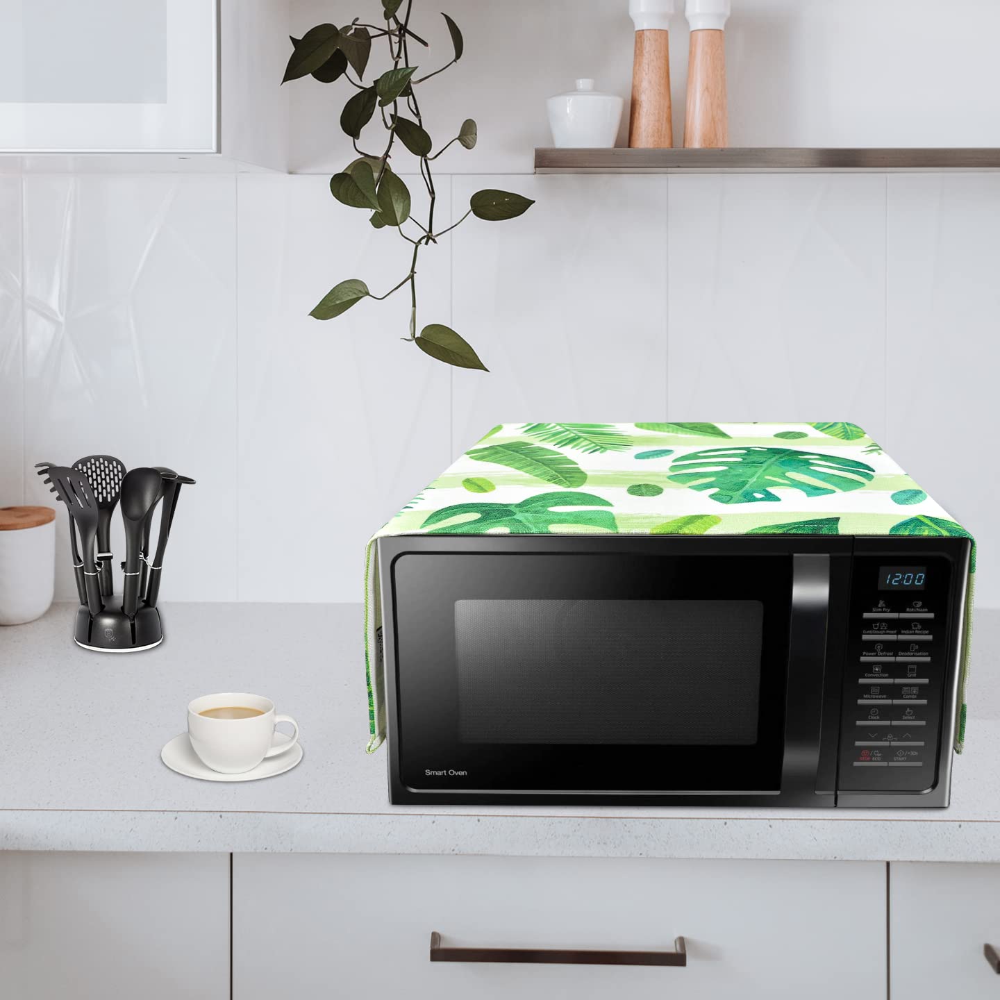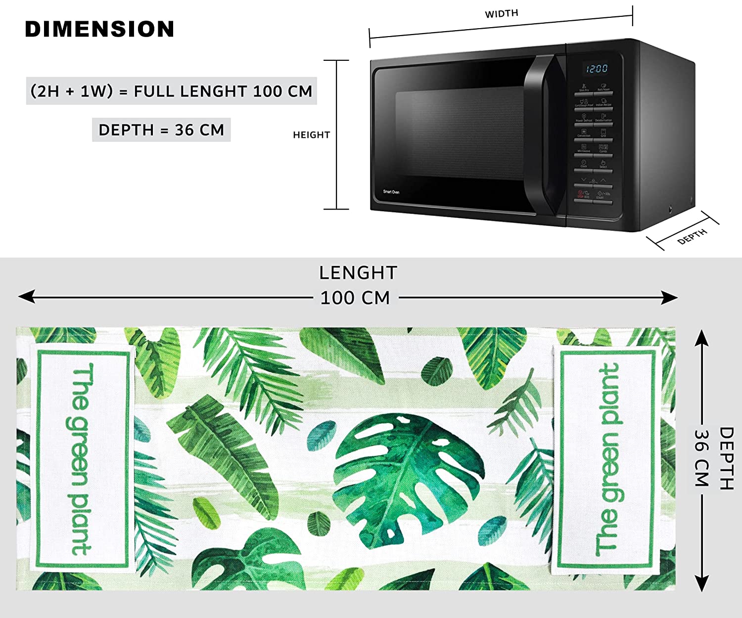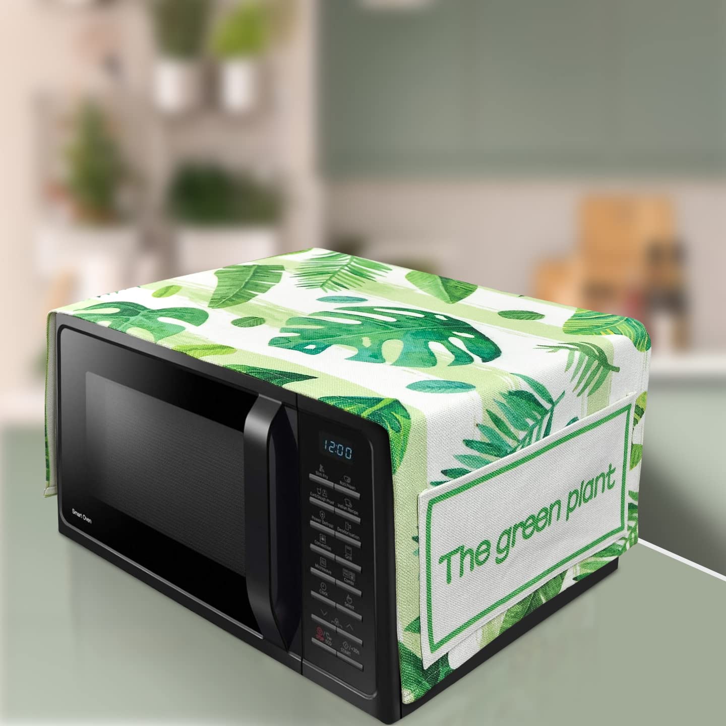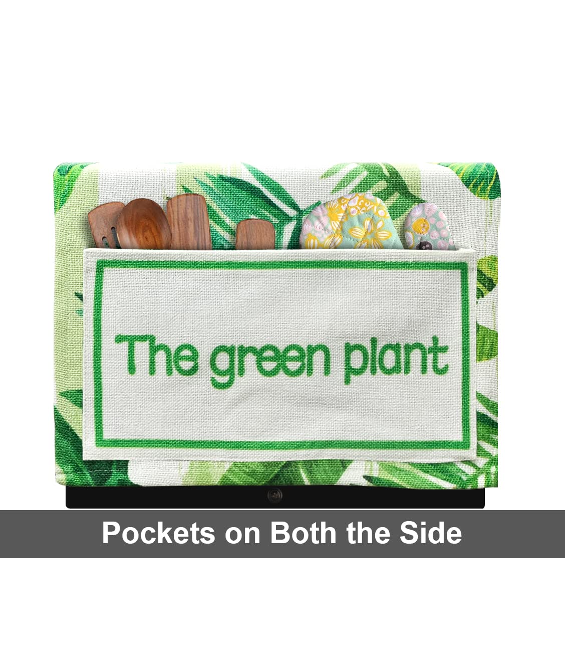 FABKUC Microwave/Oven Top Cotton Cover with 2 Utility Pockets, Splash-Proof, Dustproof Washer Dryer Cover (Green Cover)