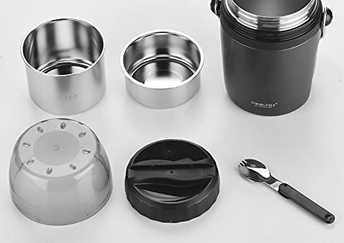 PINKAH 1600ml Double Wall Stainless Steel Insulated 3 Layer Lunch Box with Foldable Spoon