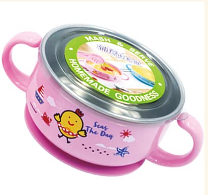 PINKAH 370ml Cute Colorful Tableware Stainless Steel Bowl Set with Smasher