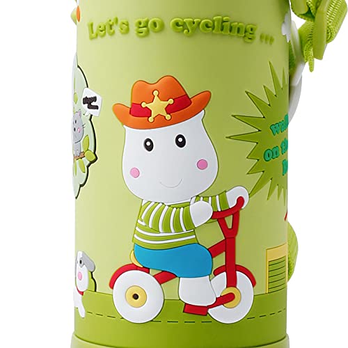 Pinkah - 3D Cartoon Sleeve Vacuum Insulated Stainless Steel for Children with Straw and Strap (Olive Green)