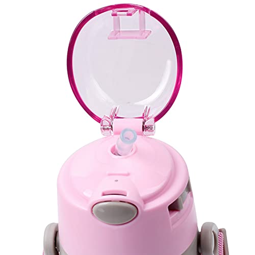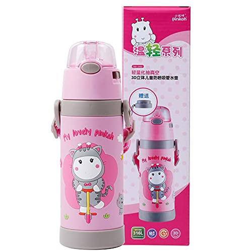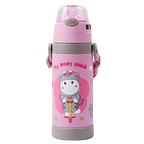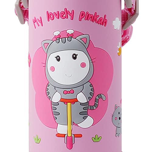 Pinkah - 3D Cartoon Sleeve Vacuum Insulated Stainless Steel for Children with Straw and Strap (Pink)