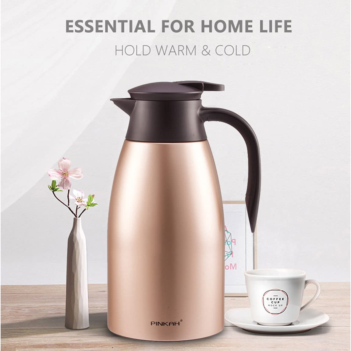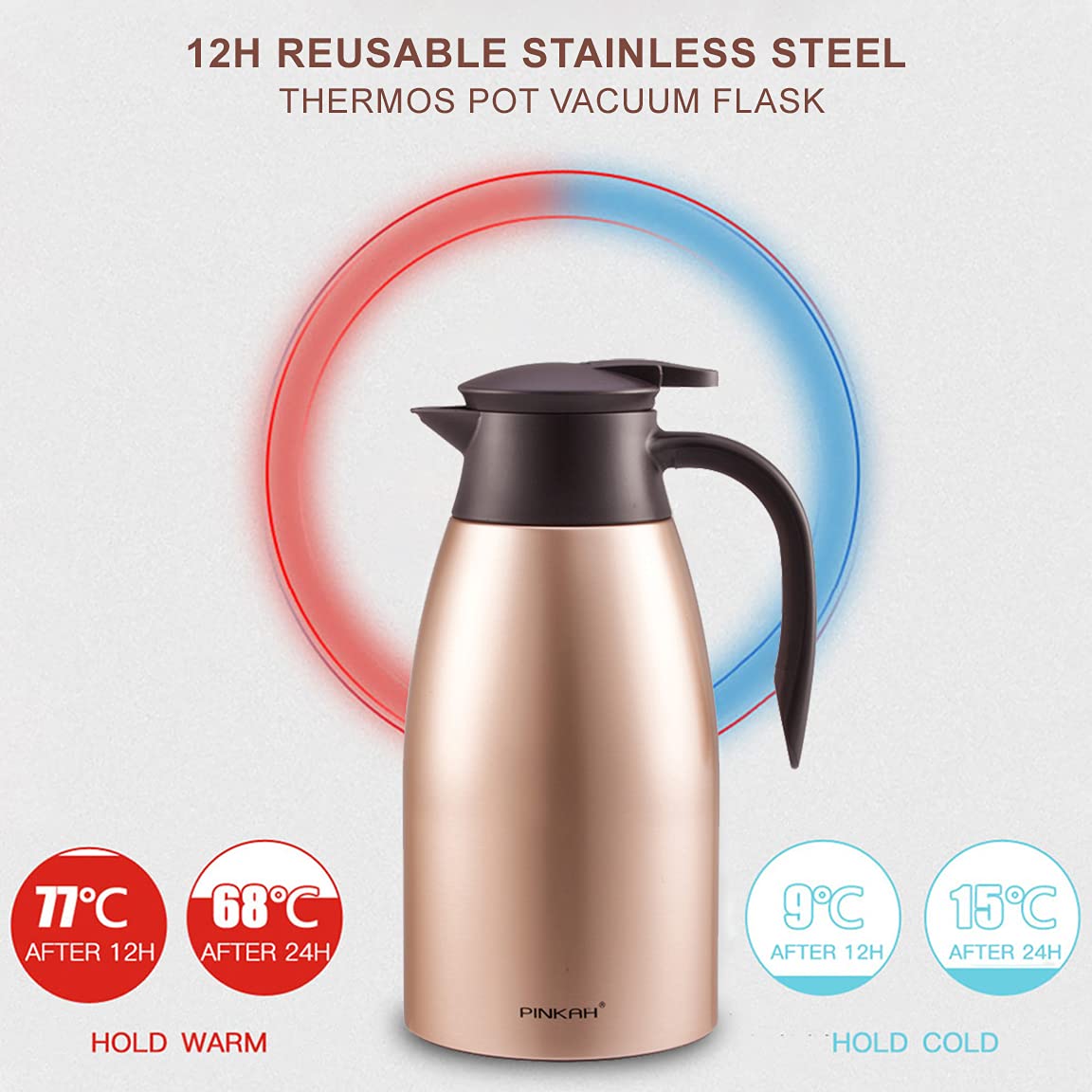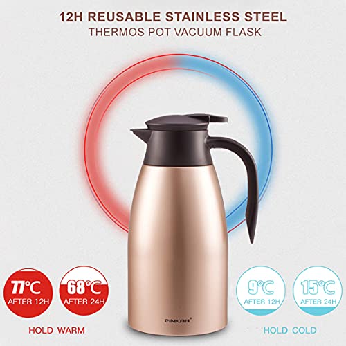 PINKAH Thermal Coffee Carafe 2L Keep Water hot up to 12h Reusable Stainless Steel Thermos Pot Vacuum Flask (Metallic Beige)